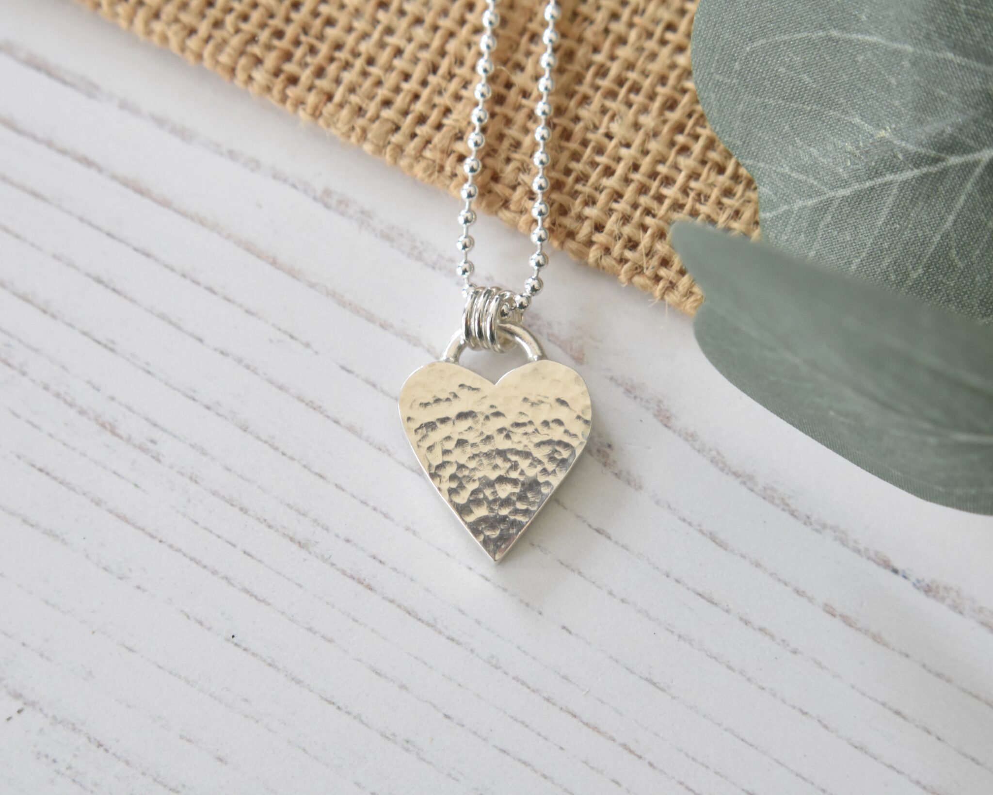 The front and back of the heart has been given a hammered finish and catches the light perfectly, in contrast the edges have been left smooth and feature my Hallmark ‘SJA ‘along with the London Assay Office Hallmark.